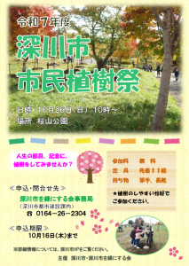 深川市と深川市を緑にする会では、植樹を通して緑を作り、育て、親しんでもらい、まちの緑化推進を図るため市民植樹祭を開催します。